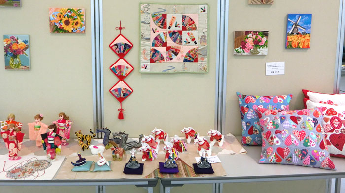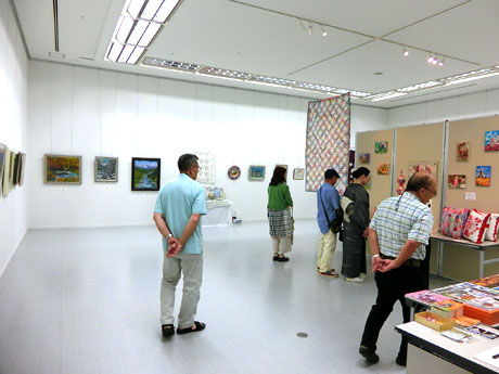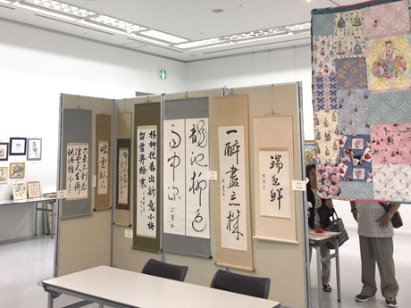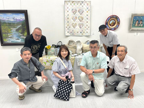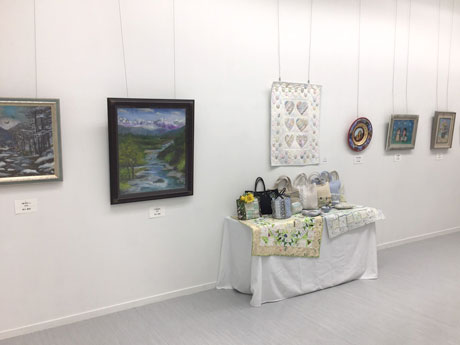 出展作品も油絵、水彩、キルト、書、日本画、和装小物、ダンボールアート、シャドウボックス、など並びました。作品を前に久しぶりの再会を楽しむもの、芸術論を戦わすもの、作品を前に家族で写真を撮るものと楽しみ方は様々で笑いの絶えないまさにヒューマンメッセージ展になりました。新しい縁も多くでき内面的にも有意義なものとなったと自負しております。