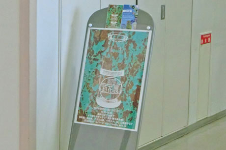 立て看板を設置。今回のデザインは牛乳瓶がモチーフとなっています。