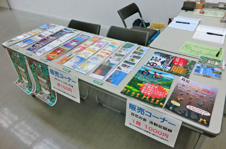ポストカードや図録も販売。お買い上げありがとうございました。売上金は会の運営に使わせて頂きます。